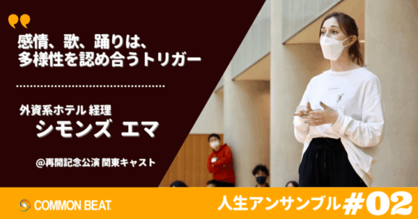 そして、プログラム参加者の生の声をリアルタイムでお届けするマガジン、『人生アンサンブル』がスタート。第2回は2022年7月にコロナ後初となる東京公演の練習中にオーストラリアから移住し、外資系ホテルで経理として働いているシモンズエマ(通称:エマ)にインタビューを行いました。このプログラムで彼女は、どのような経験をし、どんな学びを得て、その後の人生にどんな変化や影響をもたらしたのか──。『人生アンサンブル』、スタートです。