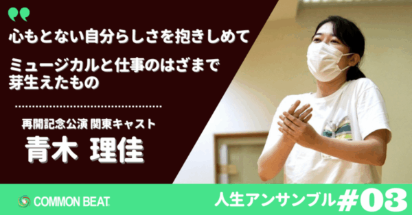 そして、プログラム参加者の生の声をリアルタイムでお届けするマガジン、『人生アンサンブル』がスタート。第3回は2022年7月にコロナ後初となる東京公演に参加した青木理佳(りか)にインタビューを行いました。このプログラムで彼女は、どのような経験をし、どんな学びを得て、その後の人生にどんな変化や影響をもたらしたのか──。『人生アンサンブル』、スタートです。
